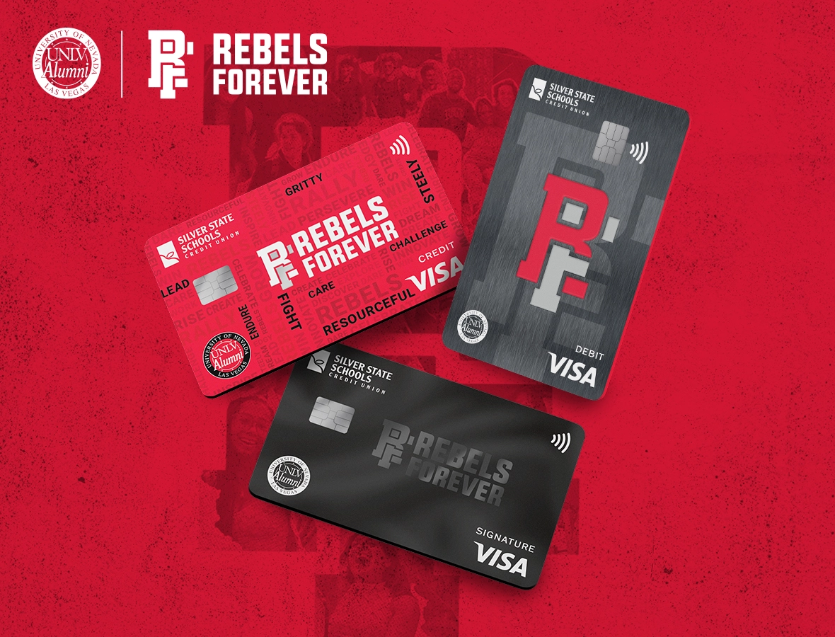 If UNLV is part of your story — whether you’re a student, alum, or simply a fan of the Rebel community — there’s now a new way to show that pride every day. Through these special Credit and Debit card designs, your everyday purchases help support UNLV Alumni Association community initiatives AT NO COST TO YOU!